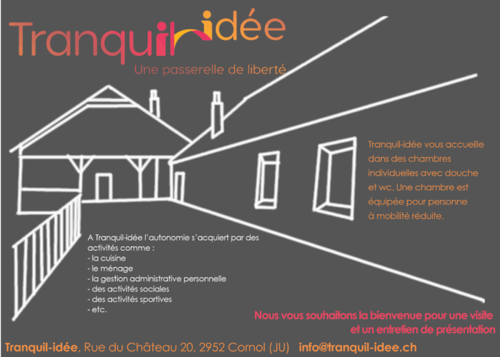 L’objectif de Tranquil-idée est de permettre au résident d’apprendre à choisir et à assumer, selon ses possibilités, le chemin menant à une amélioration de sa qualité de vie.